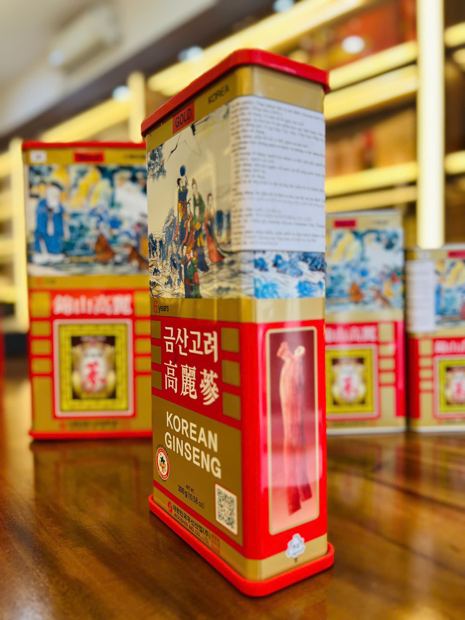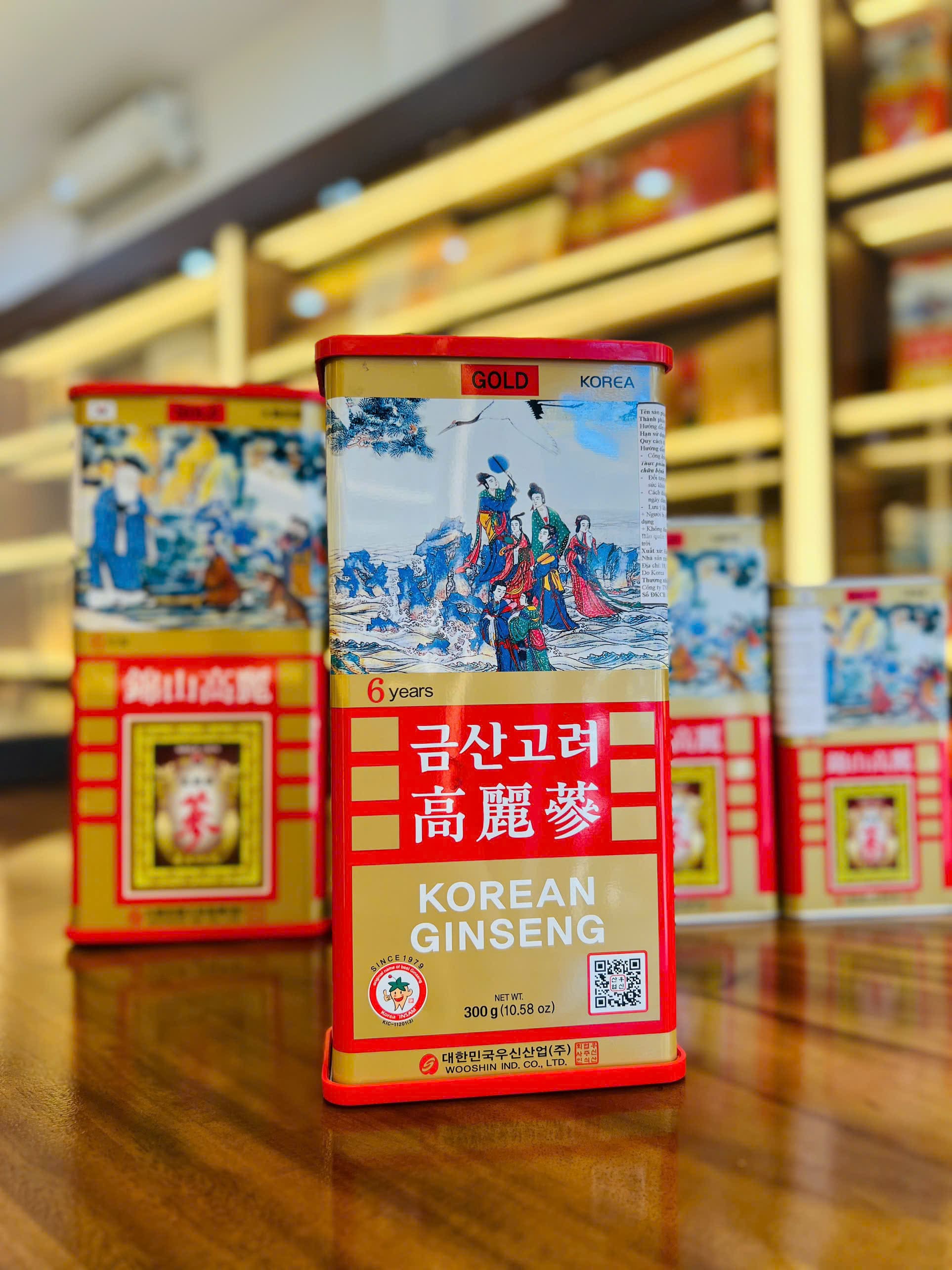 Hồng Sâm Củ Khô Wooshin Hàn Quốc Hộp Thiếc 6 Năm Tuổi Hộp 75g ( 3 củ )